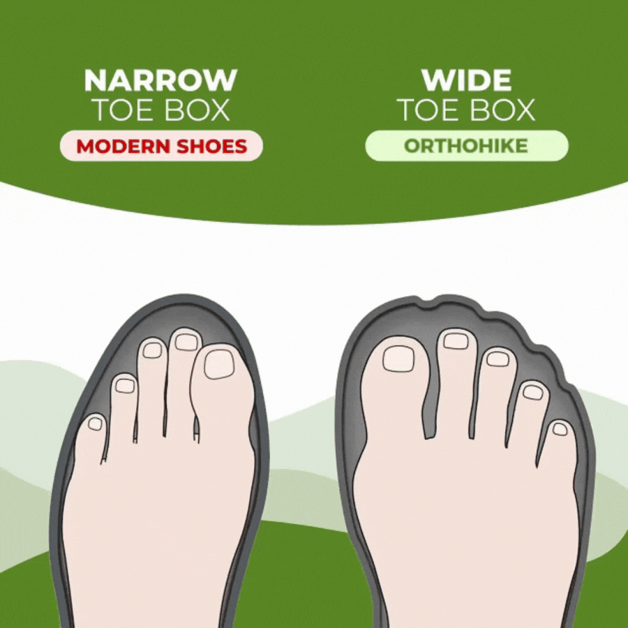 OrthoHike shoes, unlike ordinary shoes or other shoes, have a Wide & Anatomical shape that follows the lines of the foot.